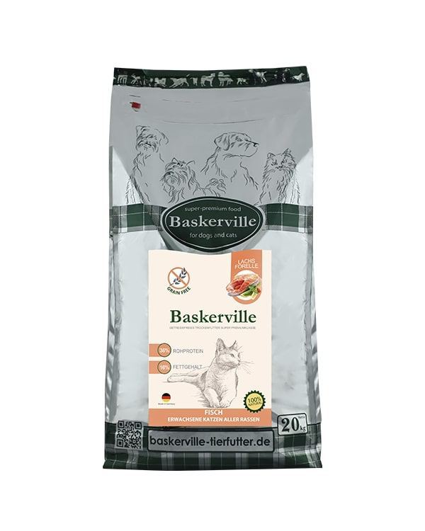 Склад: Лосось (6%), форель (4%), м’ясо домашньої птиці (10%), рибні та м’ясні субпродукти, олія та жири тваринного походження, сухі ягоди (суміш), пивні дріжджі, солодка картопля та картопляні пластівці, продукти переробки рослинного походження, вітаміни, мінерали та мікроелементи.